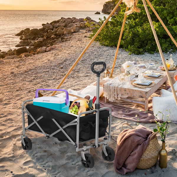 Prepare this 74.5*45.5*84cm 100kg 600d Oxford Cloth Steel Frame Flat Folding Style Black Cloth Silver Frame Garden Folding Cart in your house for sometimes convenient carrying. This tool cart, with particularly folding design, is much labor-saving and efficient. Made of high-class aluminum and oxford fabric, it provides excellent strength and durability for bearing up to 220lbs weight. When it is not in use, you can fold it to save space. It is a helpful tool for each household. Really a convenient and practical tool!